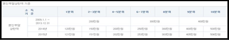 - 저소득가구(최저생계비 200%이하) : 본인부담금 200만원